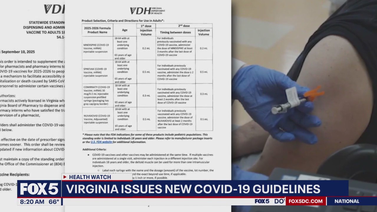 The Virginia Department of Health issued a statewide standing order this week allowing pharmacists in good standing to administer the 2025-2026 COVID-19 vaccine to "Virginians 65 years of age and older and to Virginians between the ages of 18 and 64 years of age with at least one underlying medical condition without a prescription."