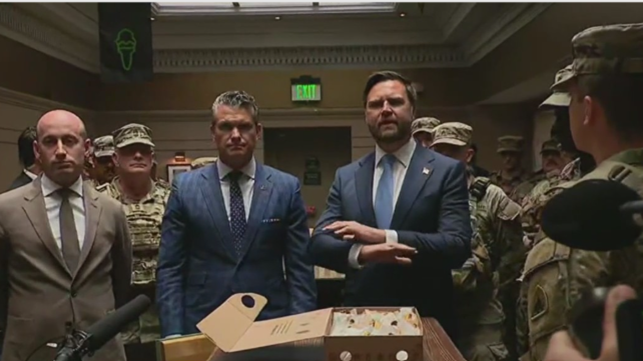 Vance met with members of the National Guard at Union Station, where several protesters heckled him and Defense Secretary Pete Hegseth, who came to thank troops and give them food.