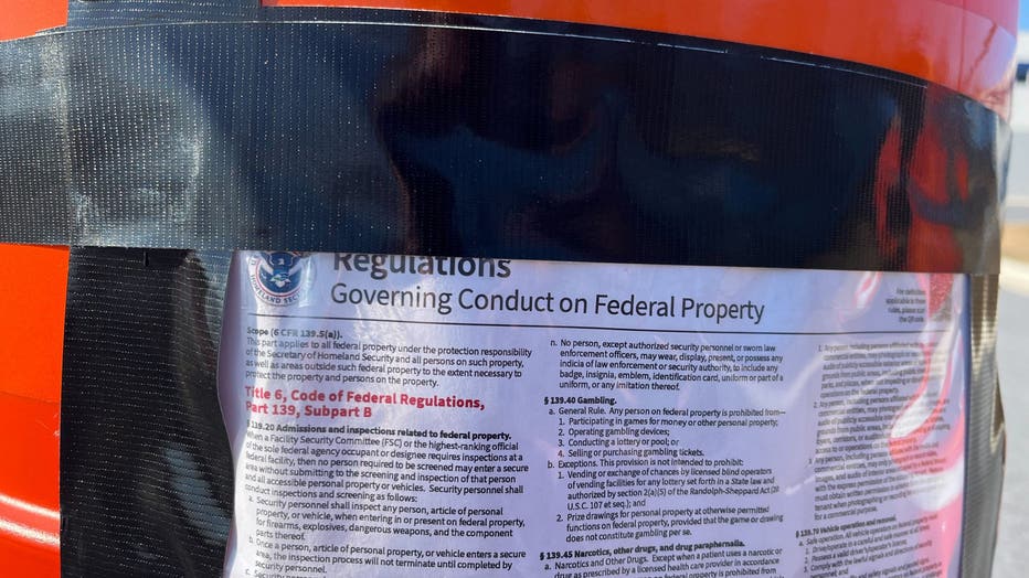 Signage and roadblocks were in place at a Washington County facility that appeared to be receiving a fleet of vehicles for Immigration, Customs and Enforcement. (Matthew Hubbard/The Baltimore Sun/Tribune News Service via Getty Images)