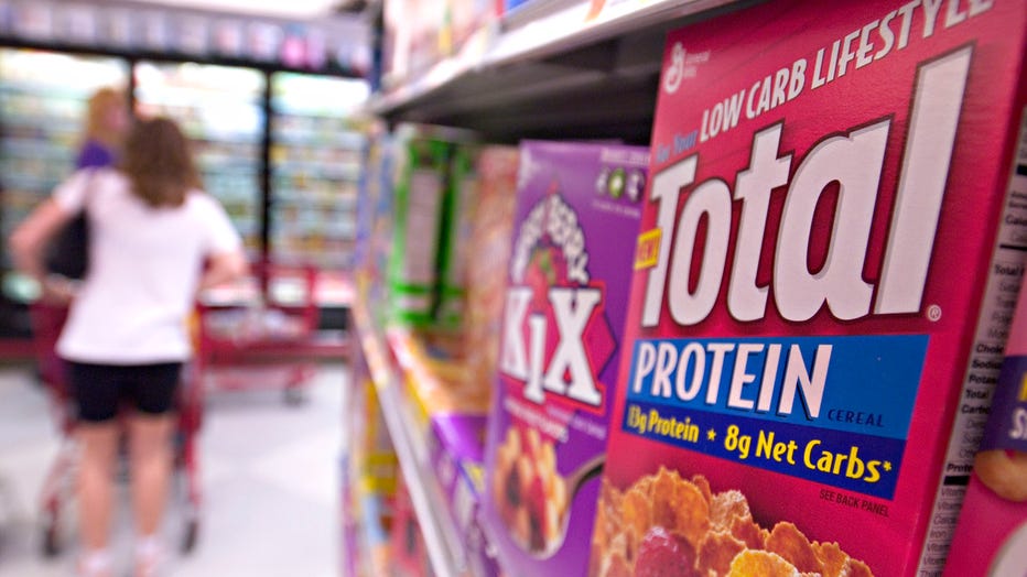 UNITED STATES - JUNE 30: General Mills Total Protein cereal sits on display in a supermarket in New York on June 30, 2004. Diageo Plc, the world's biggest liquor company, raised $2.26 billion by selling more than half its stake in General Mills Inc.,