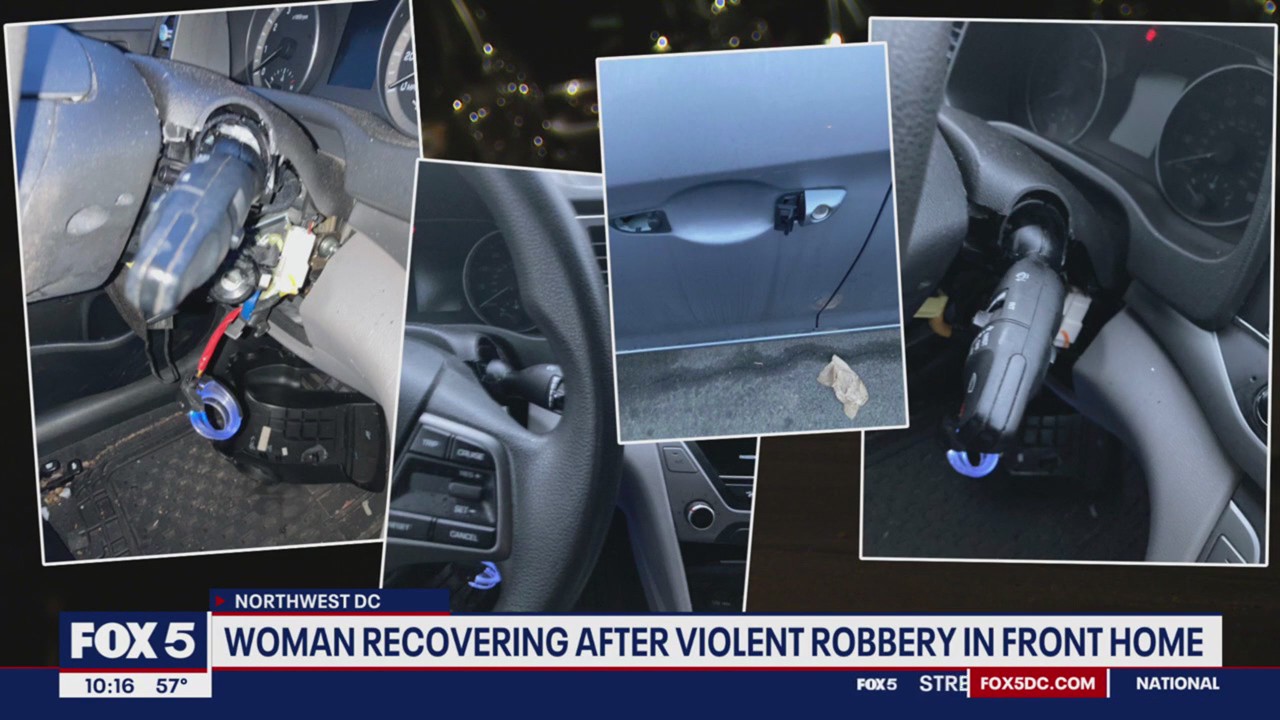 A woman in Northwest D.C. is recovering after a violent robbery right in front of her home, and it happened just days after her neighbor's car was stolen. FOX 5's Derick Waller reports from the Manor Park neighborhood with a new video of that incident.