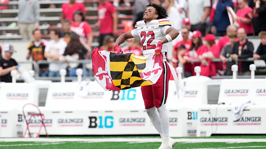 Jalen Huskey of the Maryland Terrapins celebrates a win over the Wisconsin Badgers at Camp Randall Stadium on September 20, 2025, in Madison, Wisconsin. (Photo by John Fisher/Getty Images)
