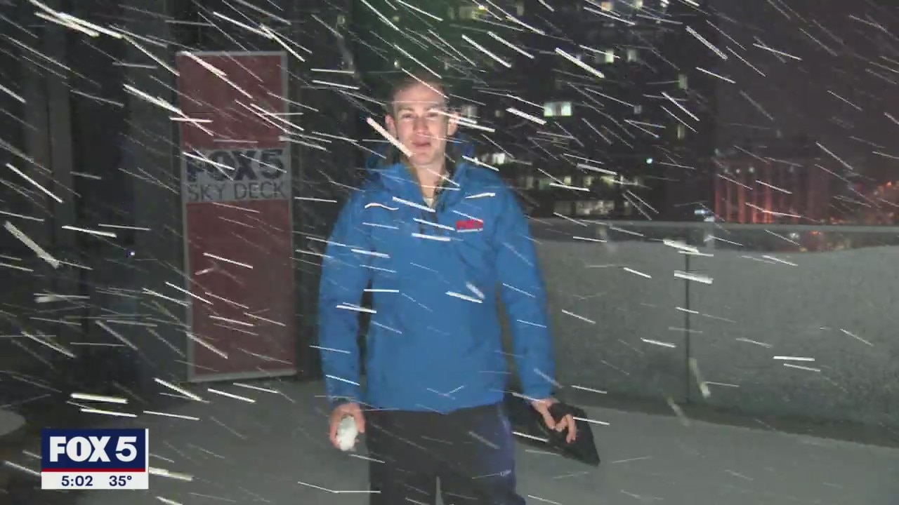 You can barely see Matthew Cappucci outside on the FOX 5 Skydeck as the snow comes down Monday morning!