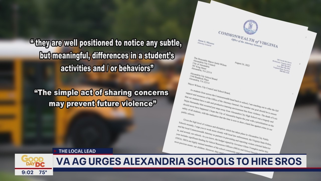 Virginia's top attorney is urging Alexandria City Schools to hire more school resource officers.