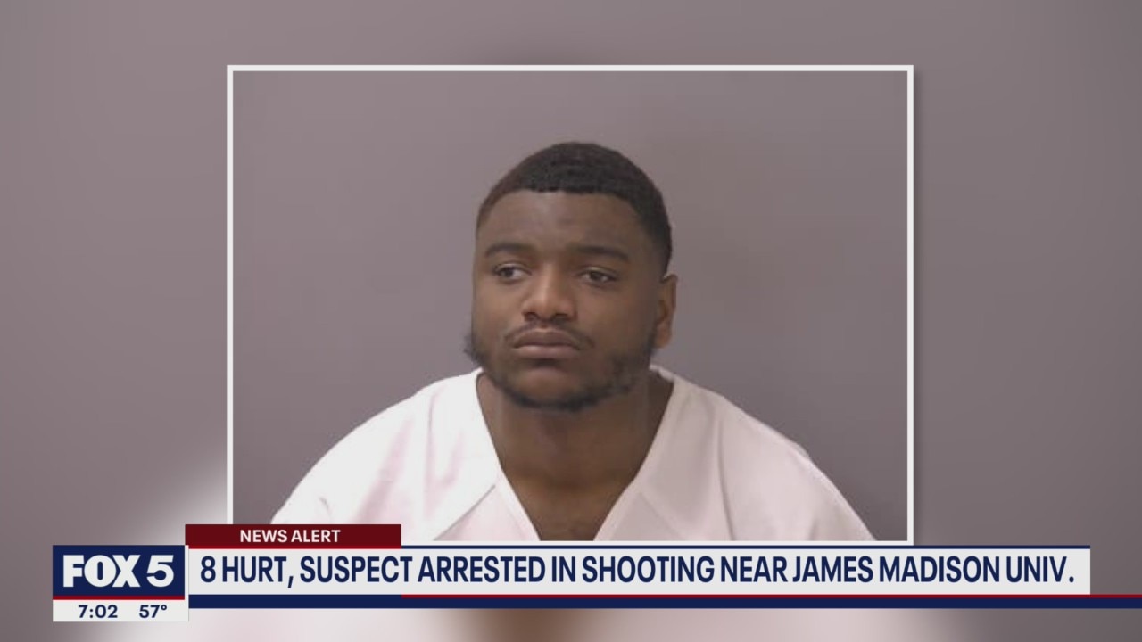Authorities have arrested a man following a shooting in Harrisonburg that left eight people with gunshot wounds.