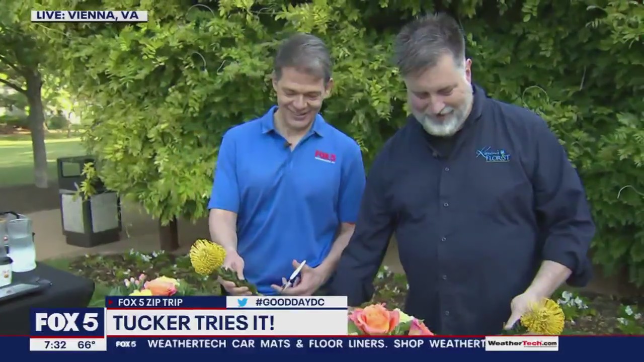 Bryan Swann from Karin's Florist shows Tucker how to make the perfect bouquet during our FOX 5 Zip Trip to Vienna!