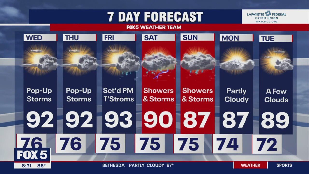 After a few showers this afternoon, the evening is looking clear right in time for those fireworks.
