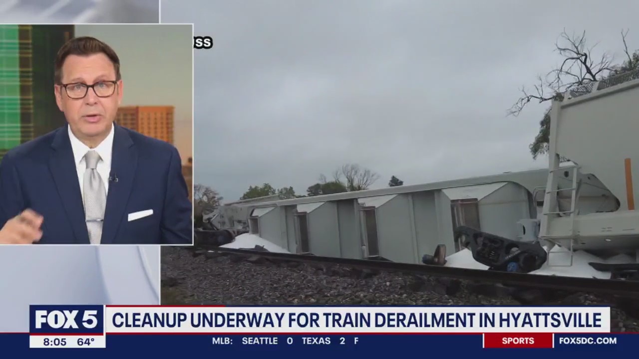 Cleanup underway after early morning train derailment shuts down roadways in Hyattsville