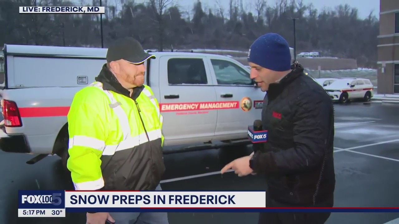 The snow has steadily fallen in Frederick County all afternoon as well. They?re gearing up for some accumulation. Fox 5?s David Kaplan is speaking with county officials on how they?re dealing with this.