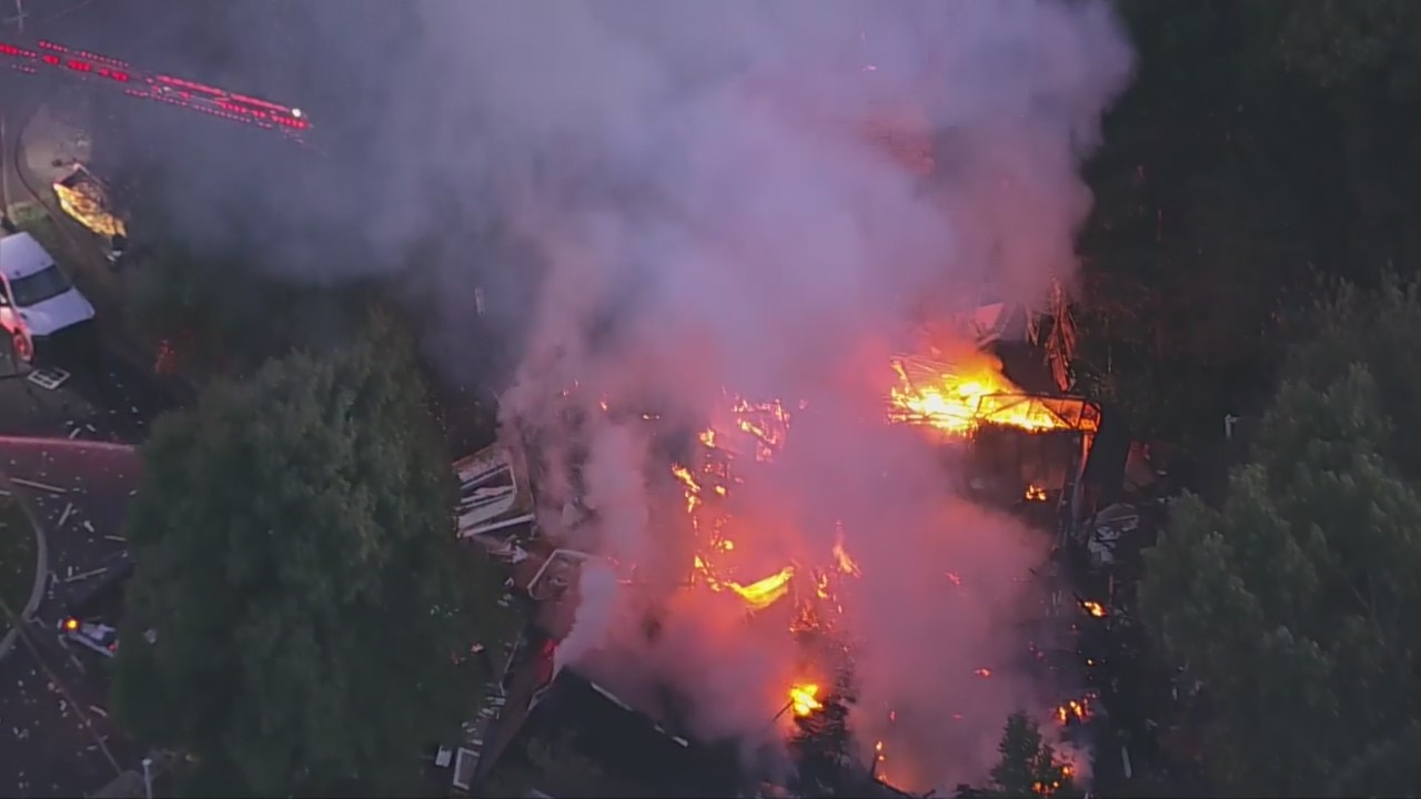 SkyFox footage of the response to a home explosion in Haymarket, Virginia.