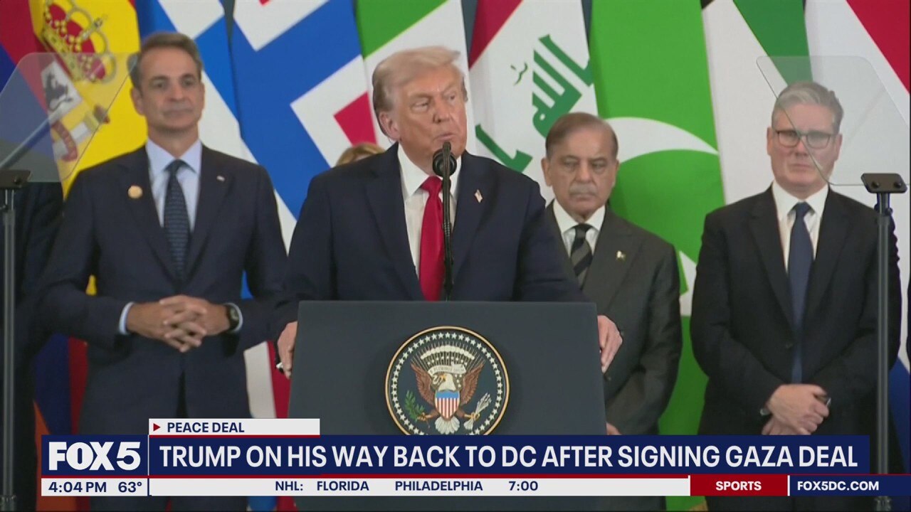 President Donald Trump traveled to the Middle East on Monday, where he signed a peace deal in Egypt.