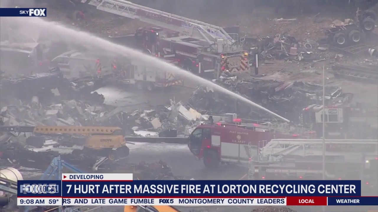 Seven people are recovering after a massive fire at a scrapyard in Fairfax County. Richmond Highway, which was closed due to the fire, has since reopened.