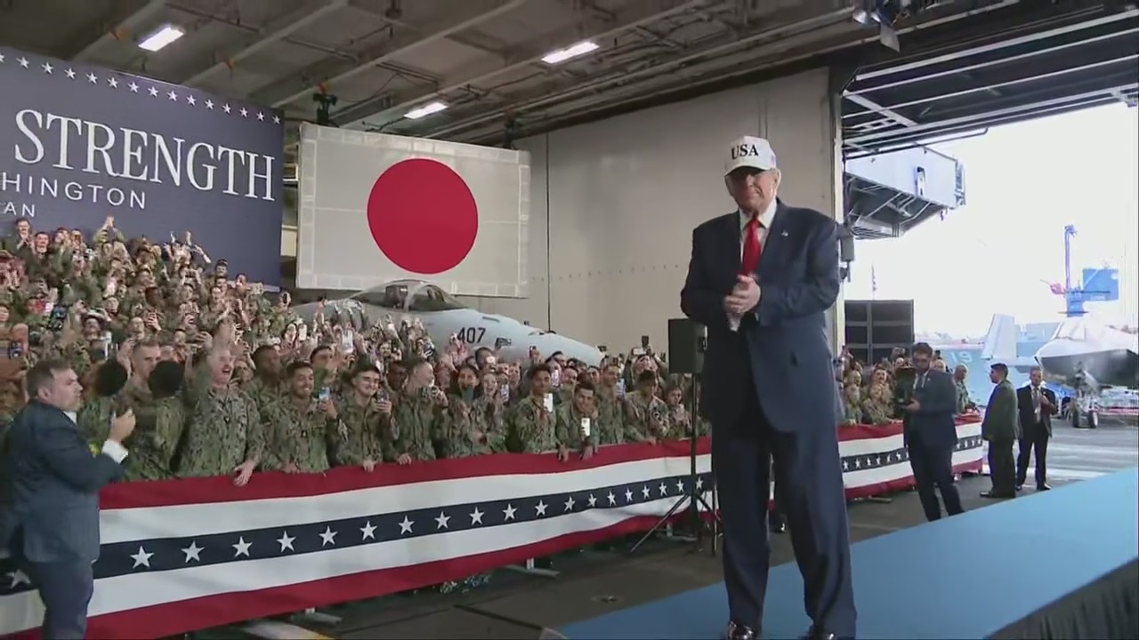 President Donald Trump continues his Asia tour Tuesday. He began one of his busiest days with a visit to the USS George Washington at Yokosuka Naval Base and a meeting with newly elected Japanese Prime Minister Sanae Takaichi.