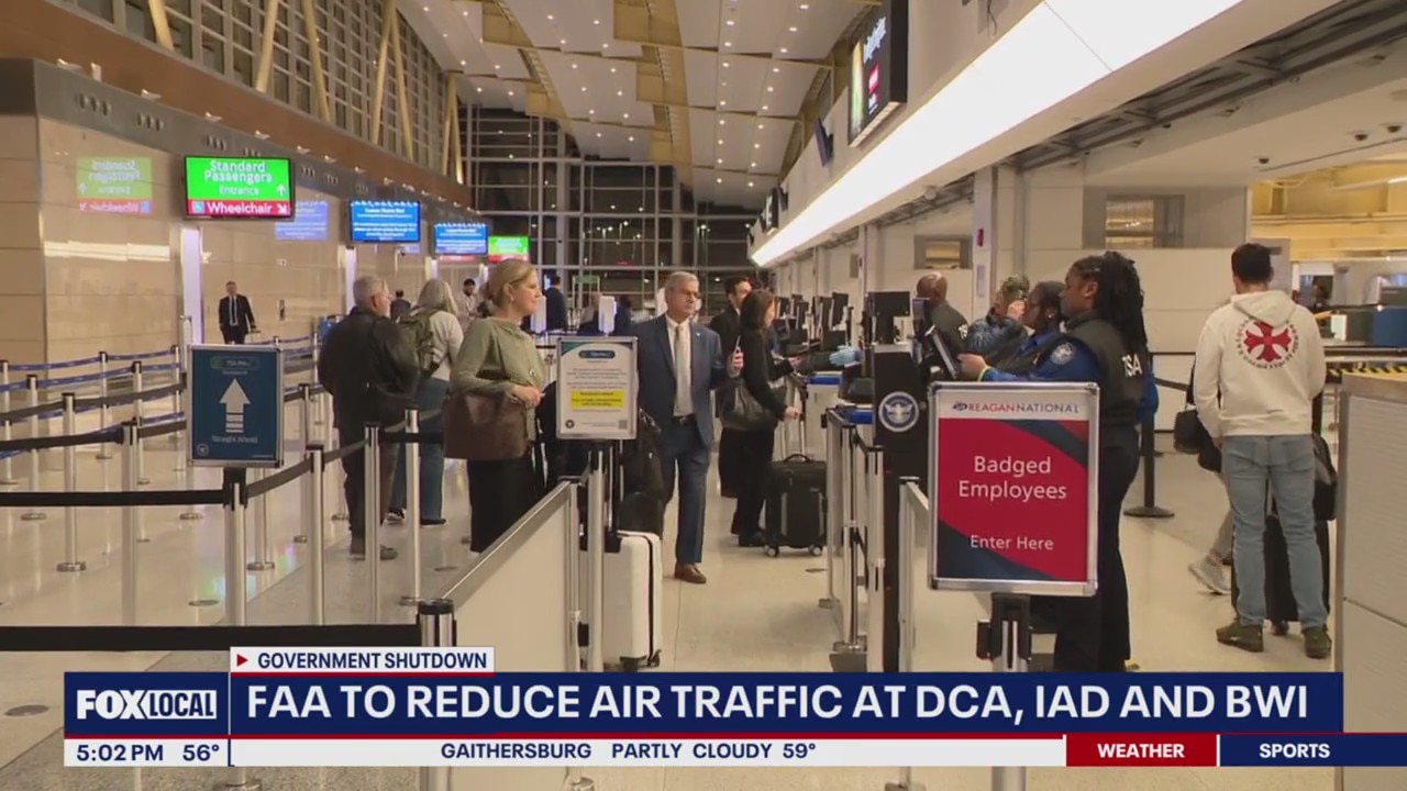 The Federal Aviation Administration is cutting flights at the nation’s busiest airports, including BWI, Reagan National and Dulles. The move comes as the FAA struggles to staff enough air traffic controllers- who are working without pay amid the government shutdown. FOX 5's Tisha Lewis reports.