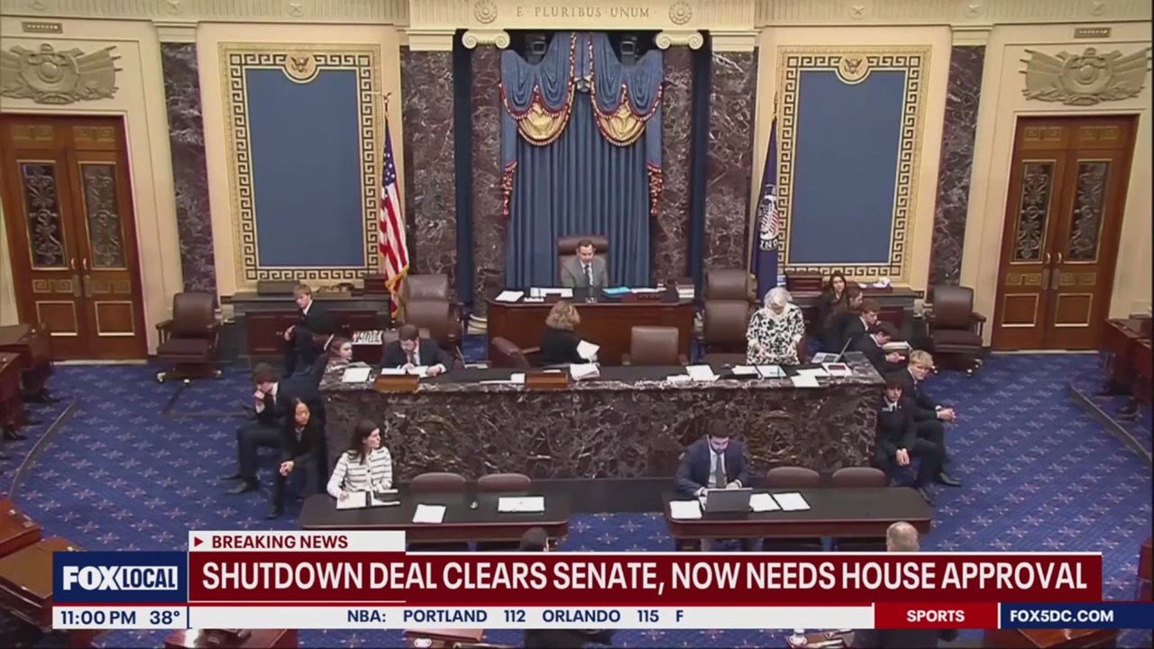 Government shutdown deal clears in senate 60 - 40, now needs house approval which expected Wednesday night.