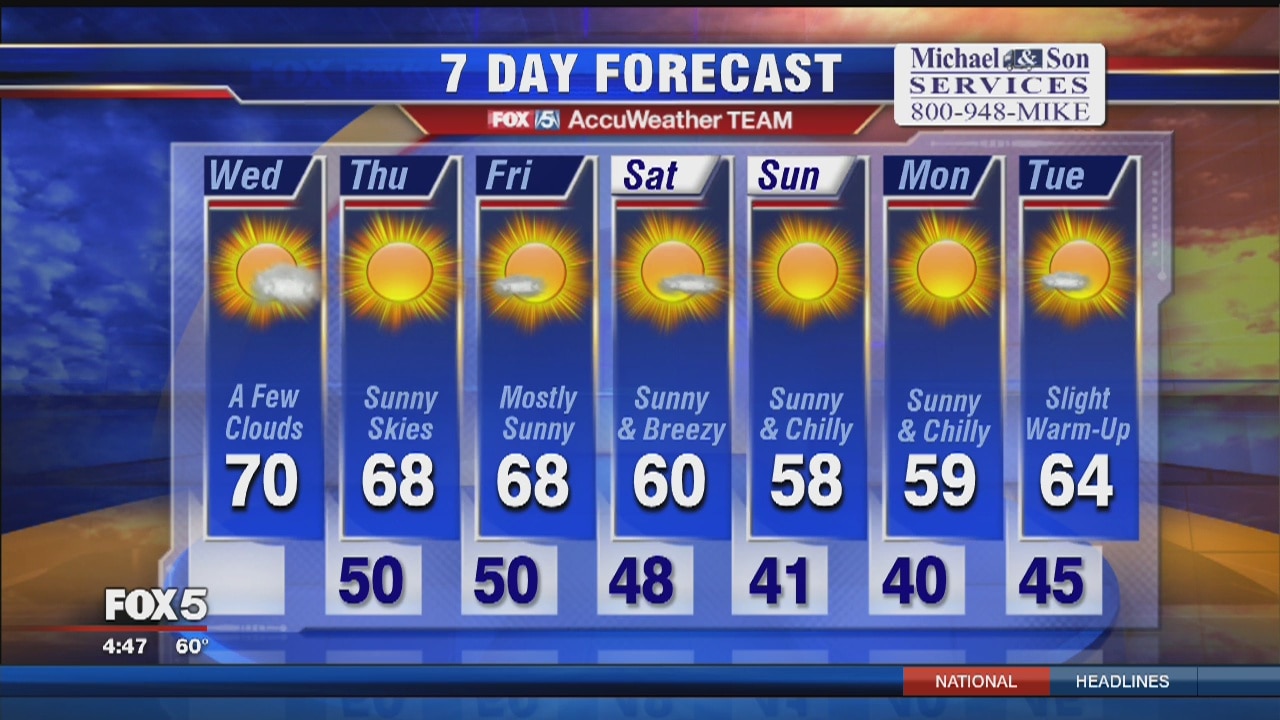Gary McGrady has the FOX 5 Weather forecast for Wednesday, October 14.