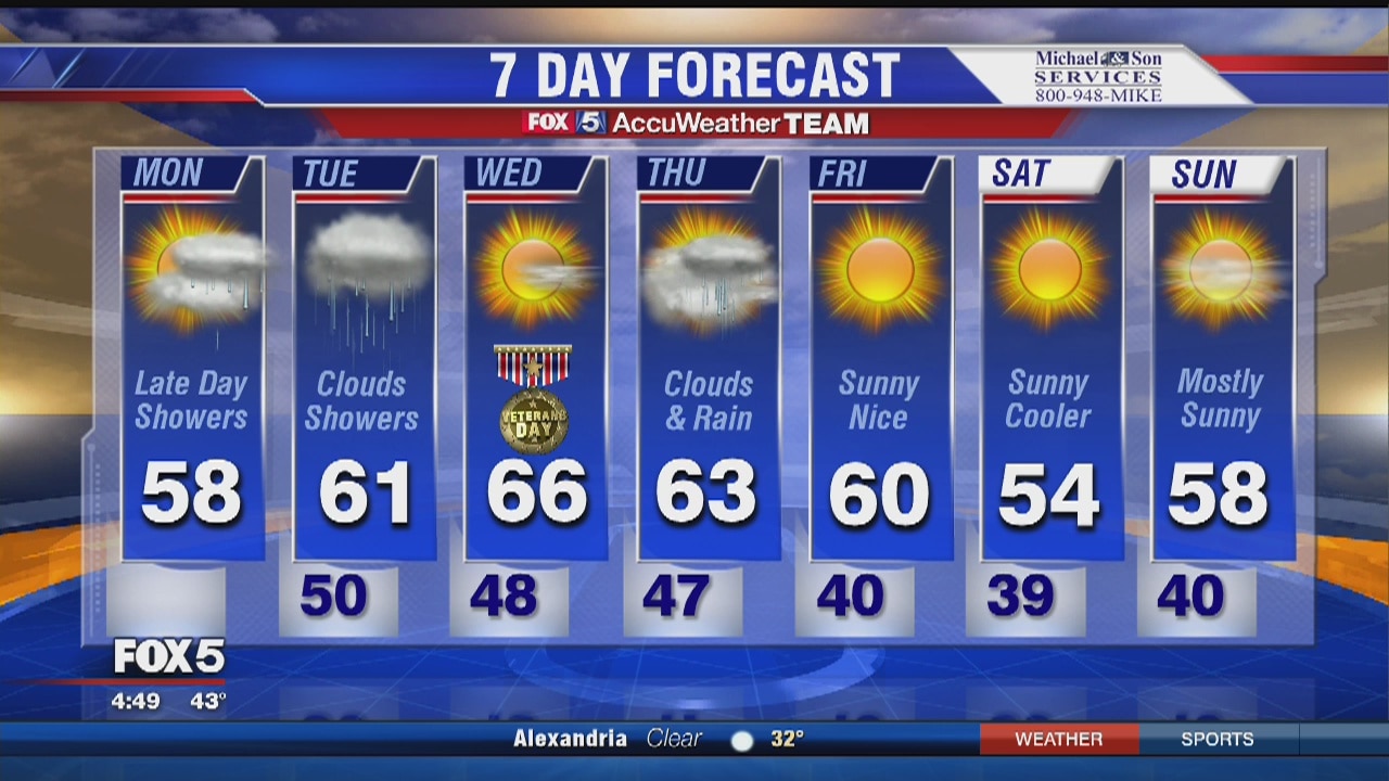 Gary McGrady has the FOX 5 Weather forecast for Monday, November 09.