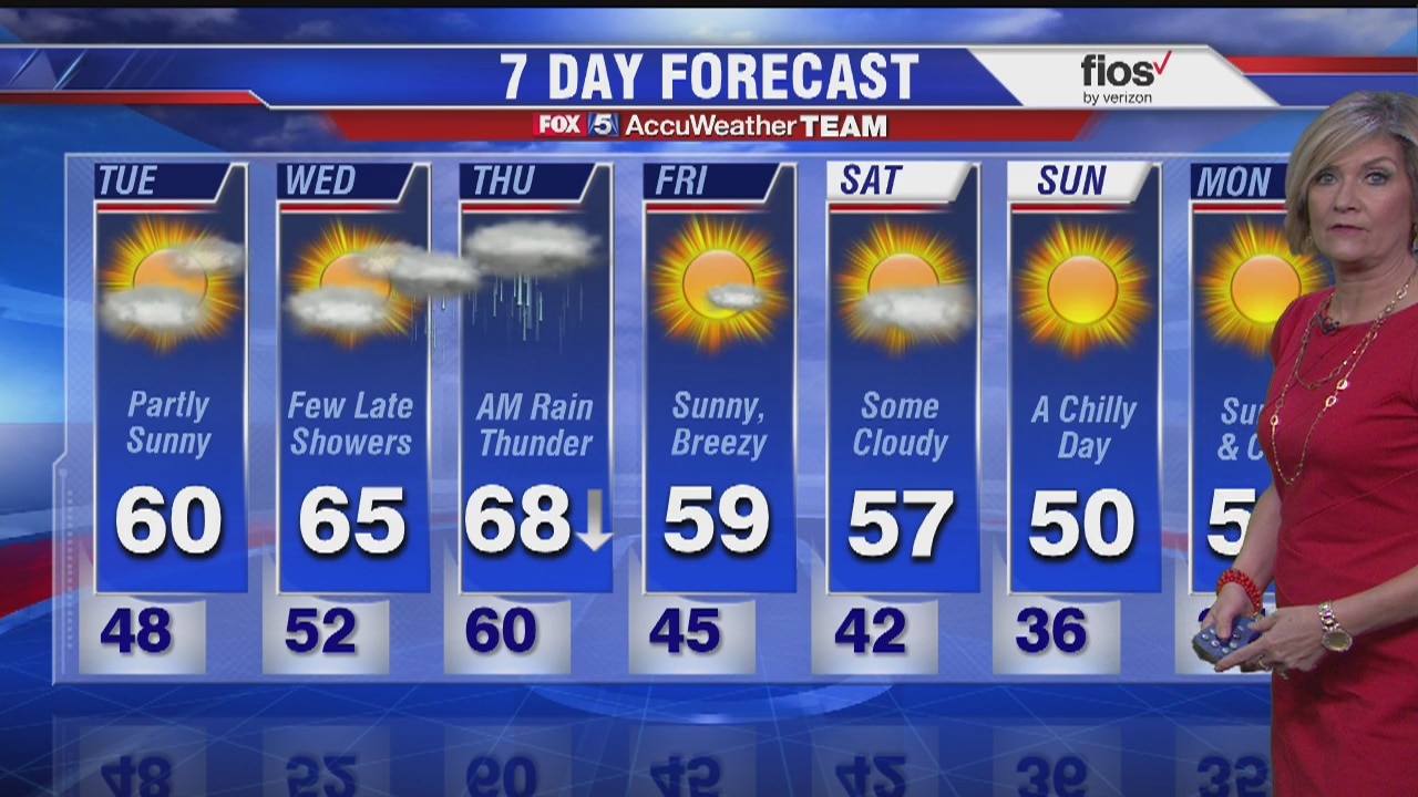FOX 5's Sue Palka has the latest on your 7-day forecast.
