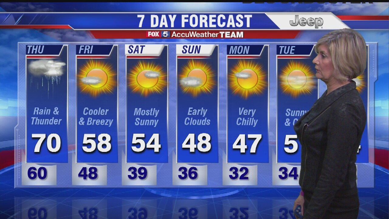 FOX 5's Sue Palka says rain is in the forecast for Thursday. Learn more in her weather video forecast.