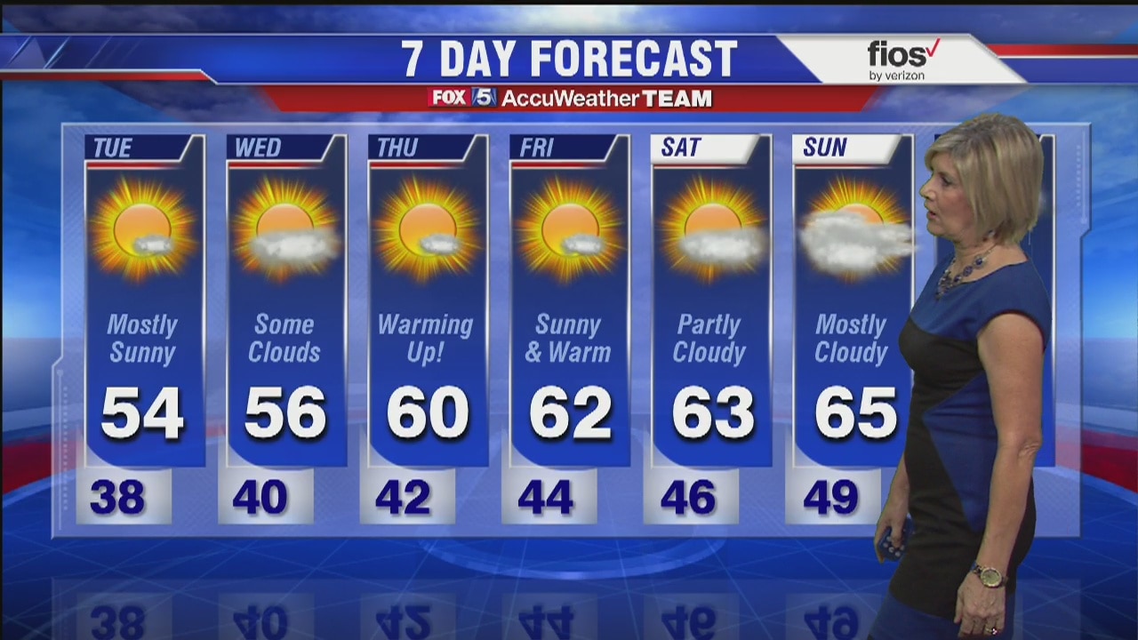 More sun and warmer weather are on tap for us this week. FOX 5's Sue Palka has the latest in her forecast.