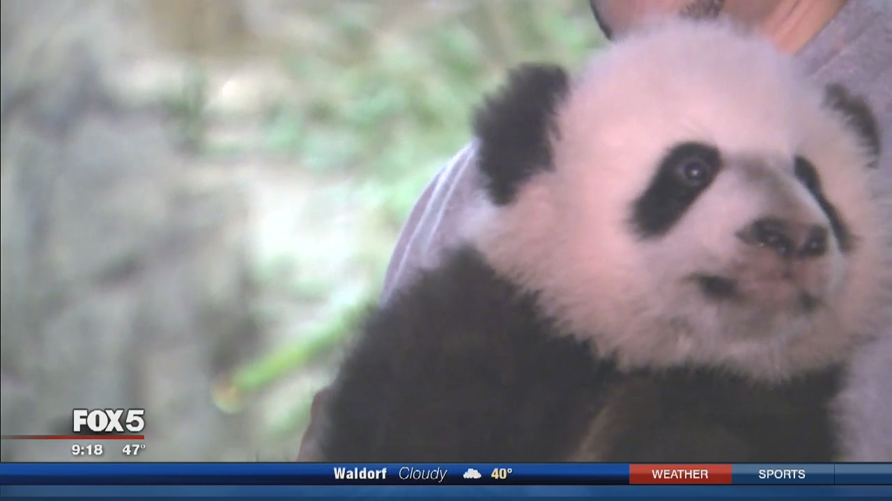 If the youngest giant panda cub at the National Zoo is stressed out about appearing in front of crowds for the first time, he isn't showing it.