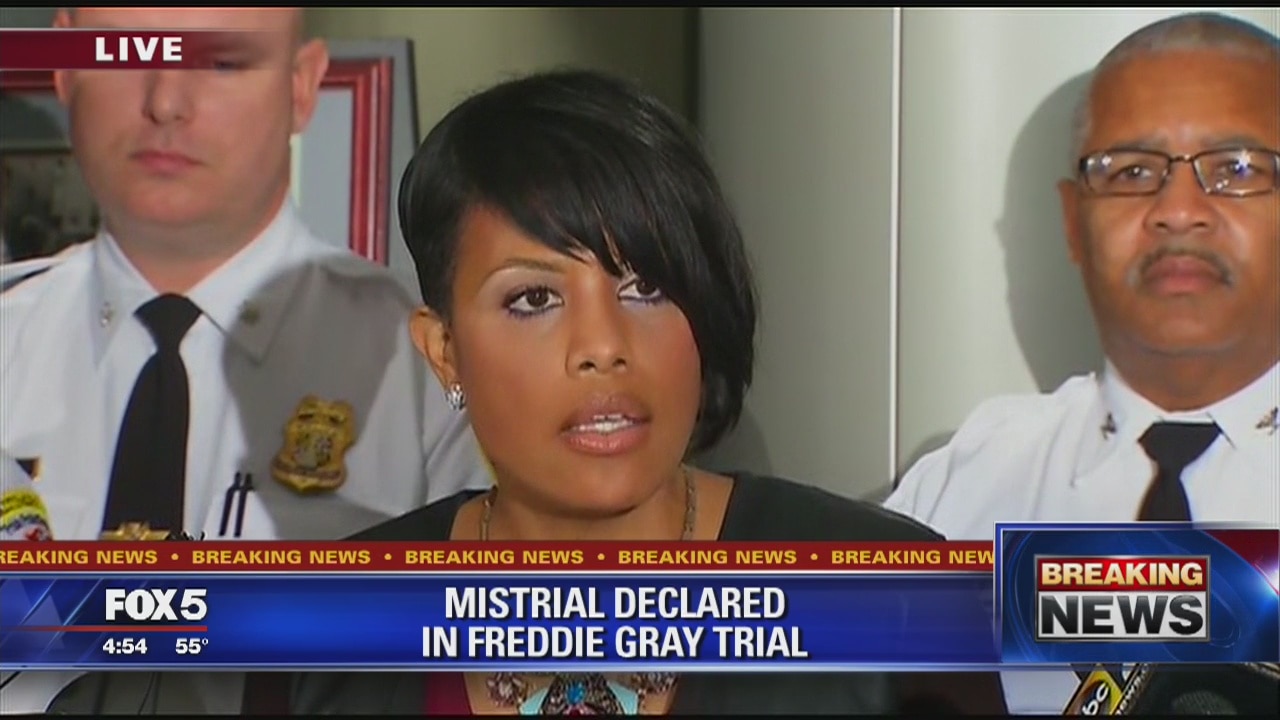 Baltimore Mayor Stephanie Rawlings-Blake and Police Commissioner Kevin Davis addressed the media after a mistrial was declared for officer charged in Freddie Gray's death.