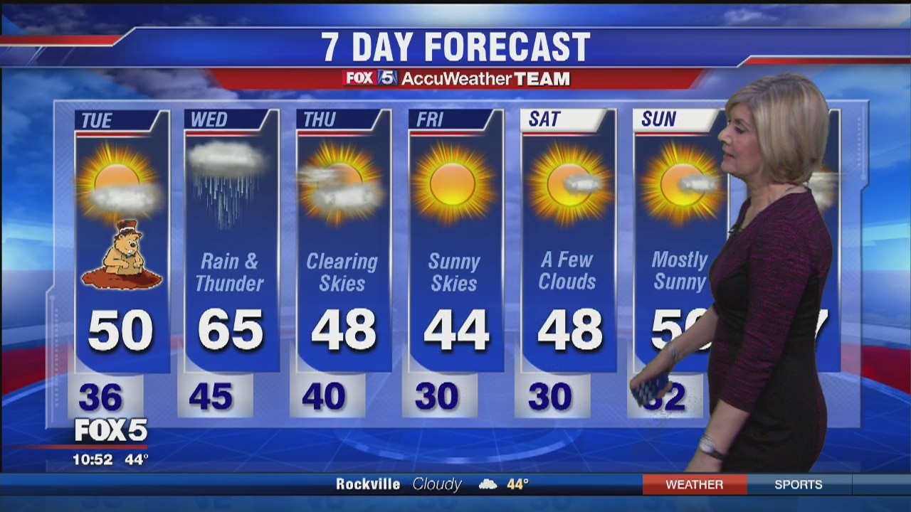 FOX 5's Sue Palka has the details on a dry, but cooler Groundhog Day.