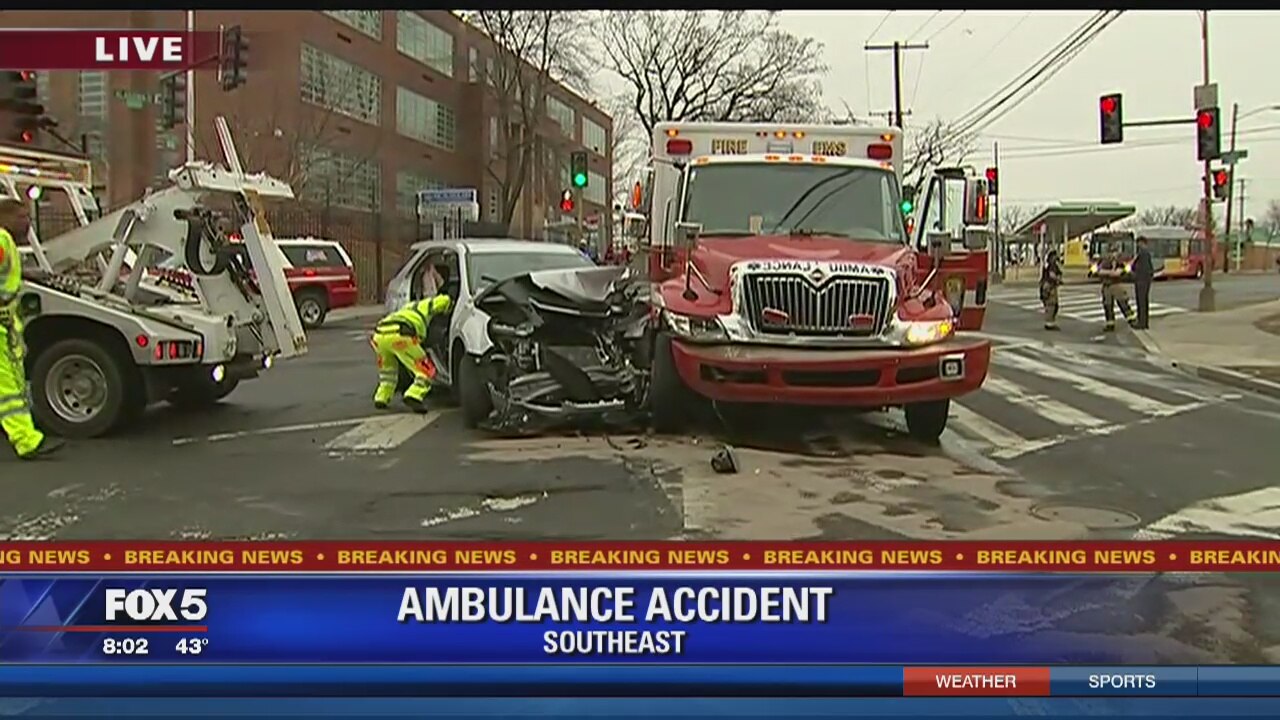 An ambulance with a patient inside was involved in an accident while on the way to the hospital. The accident happened just before 7:30 a.m. at Alabama Avenue and Naylor Road in southeast D.C.