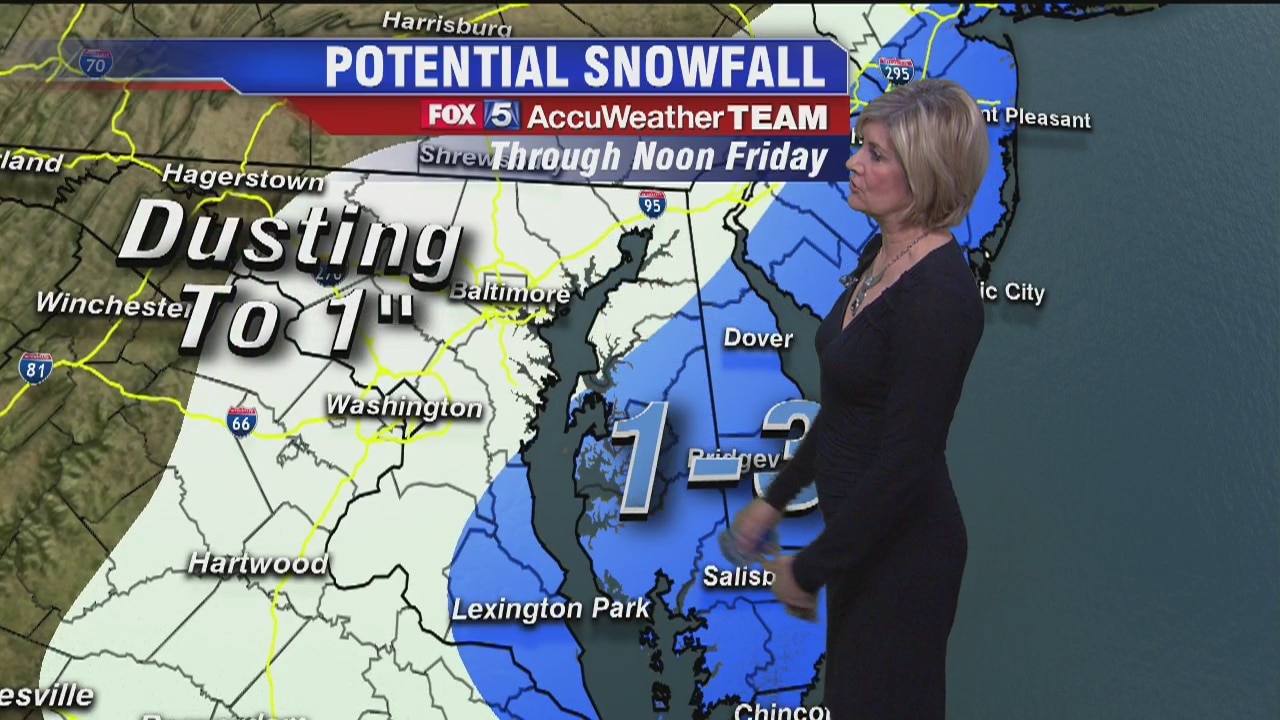FOX 5's Sue Palka has the latest on the snow expected to hit part of the D.C. region.