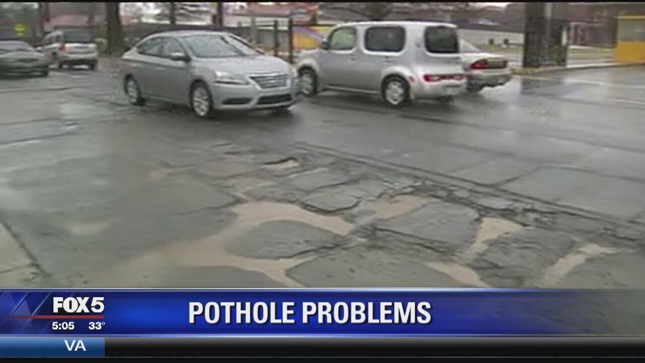 FOX 5's Melanie Alnwick reports on potholes wreaking havoc on city drivers.