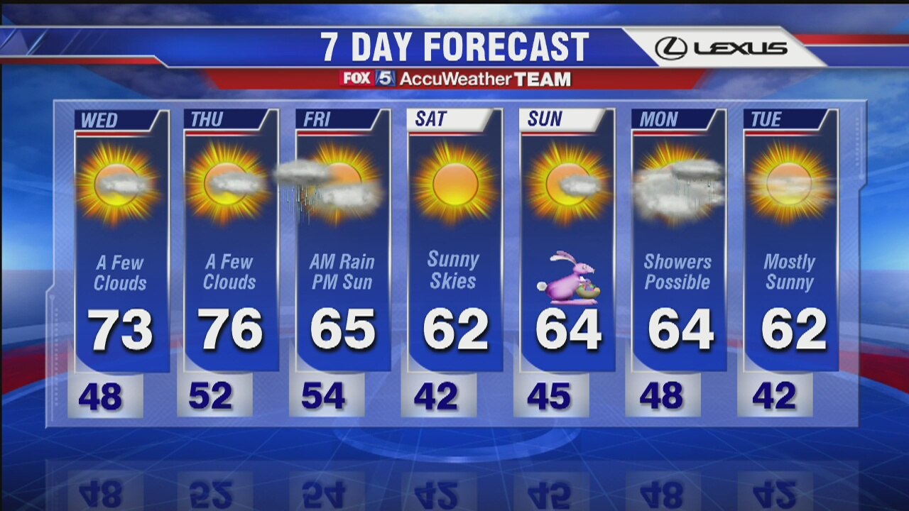 FOX 5's Sue Palka has the latest on the warm and sunny weather for the next few days.