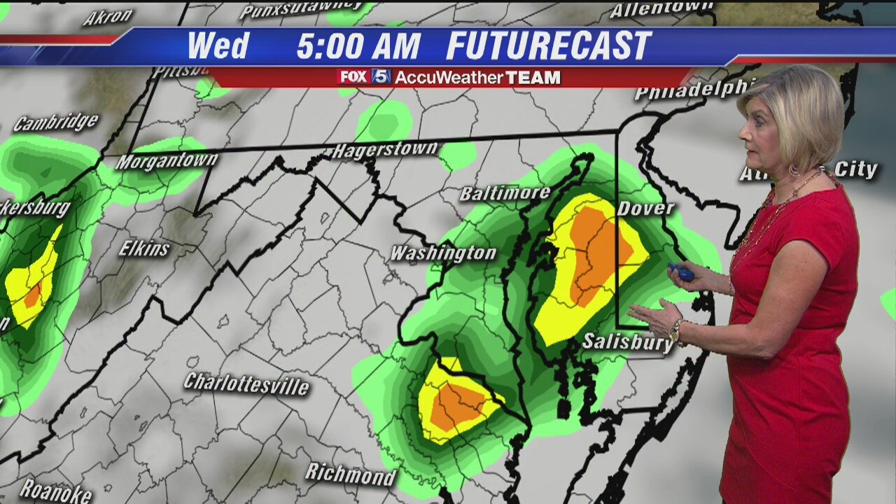 The string of rain is likely to continue. FOX 5's Sue Palka has more in her weather forecast.