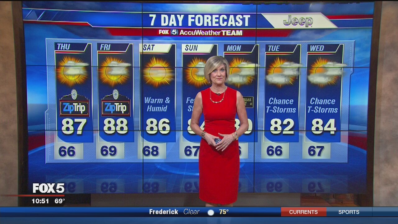 The summer-like weather continues Thursday as FOX 5's Sue Palka has the latest in her forecast.