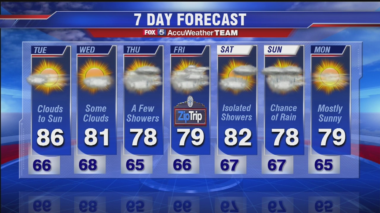 FOX 5's Caitlin Roth has your latest weather forecast for the post-Memorial Day work week.