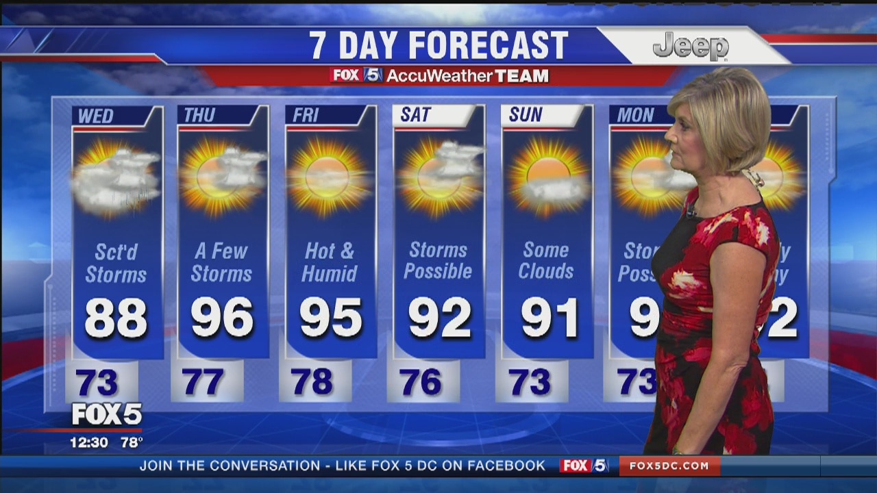 FOX 5's Sue Palka has more on some possible storms for Wednesday and another heat wave later this week.