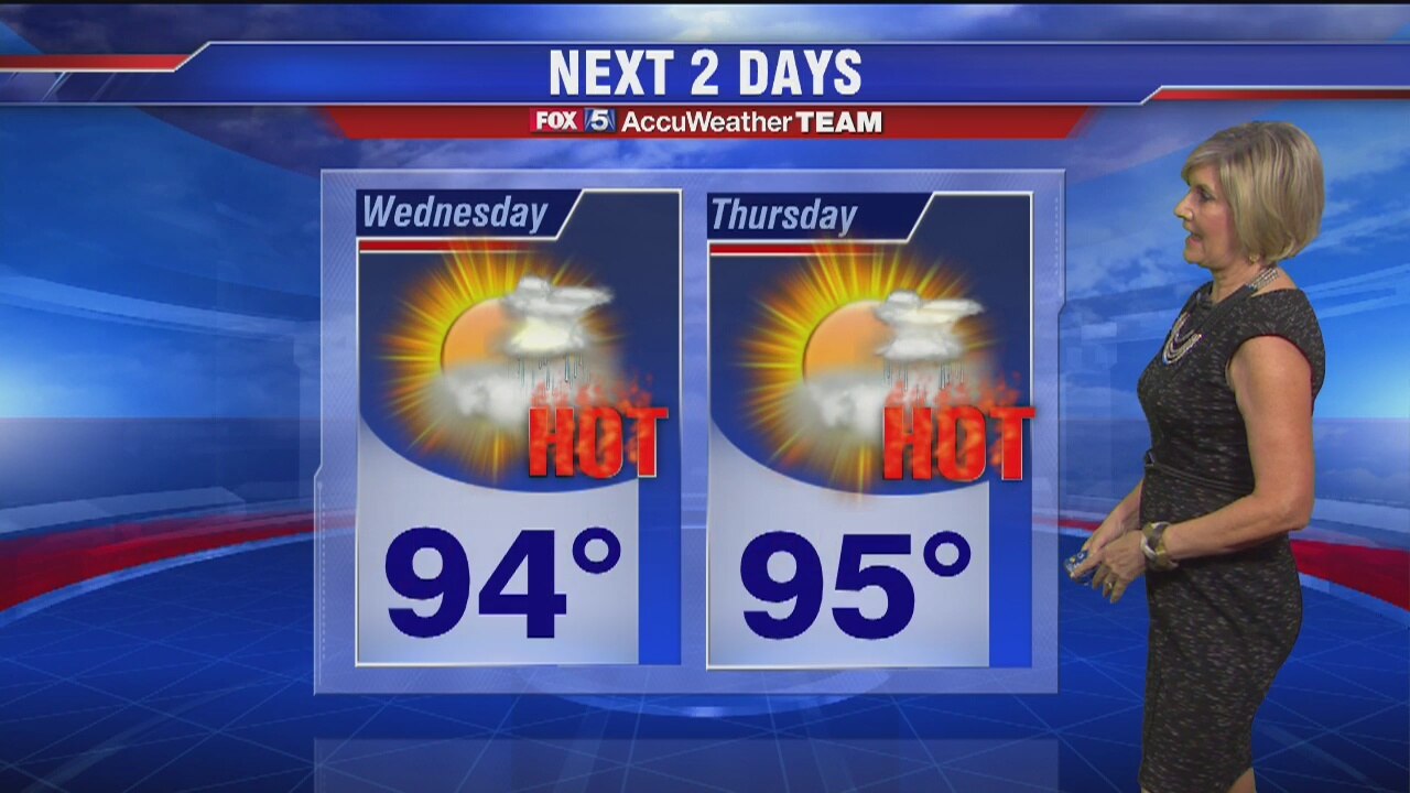 FOX 5's Sue Palka has the latest on the hot weather in her video forecast.