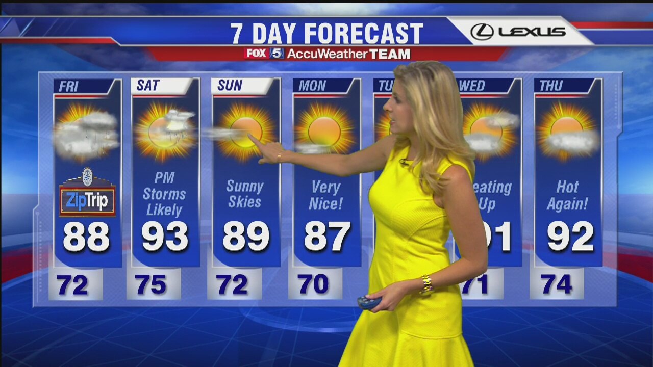 FOX 5's Caitlin Roth has more Friday's forecast and a look ahead to the weekend.