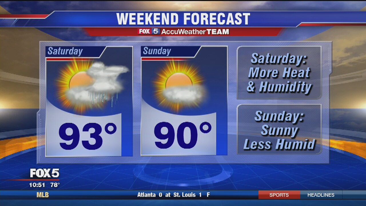FOX 5's Caitlin Roth has the latest on the weekend weather forecast.