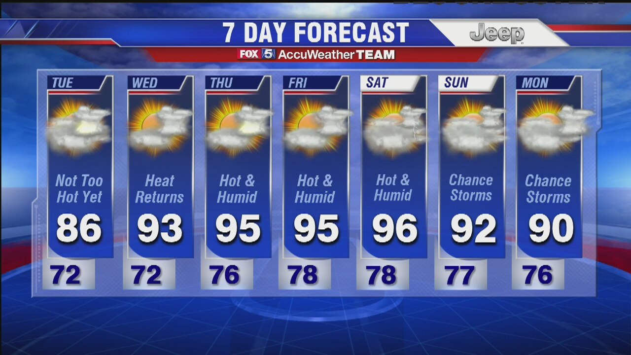 It'll be another day in the 80s on Tuesday, but the heat wave will be returning later this week. FOX 5's Caitlin Roth has more.