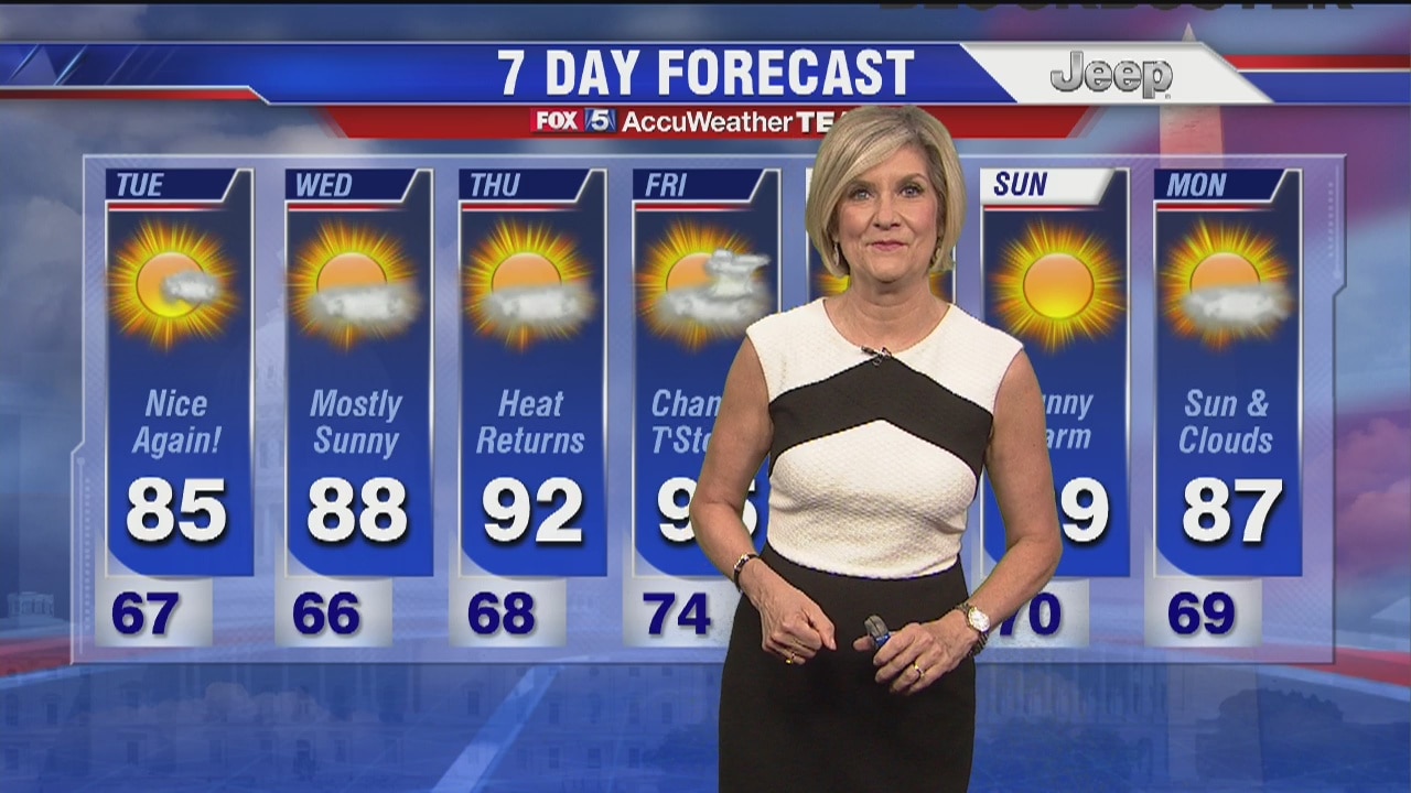 FOX 5's Sue Palka has more on the very pleasant Tuesday weather forecast.