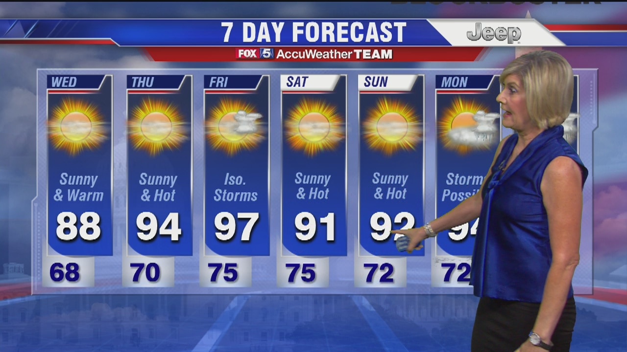 FOX 5's Sue Palka has the latest on the weather in her video forecast.