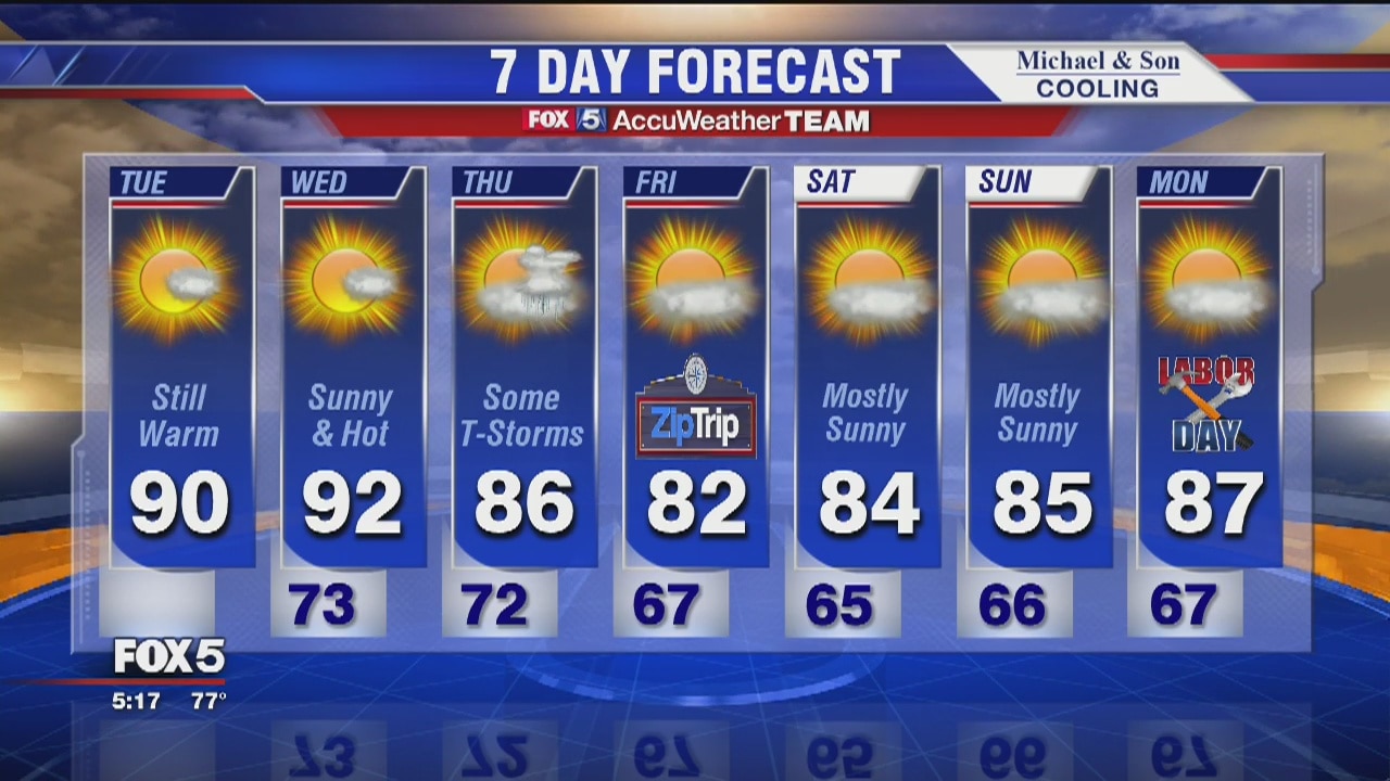 Gary McGrady has the FOX 5 Weather forecast for Tuesday, August 30.