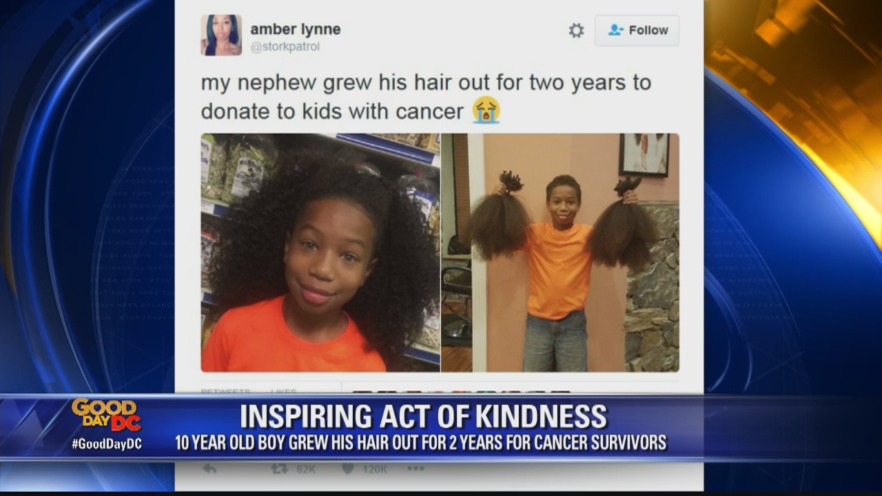 10-year-old boy grows hair out for 2-years to help cancer patients
