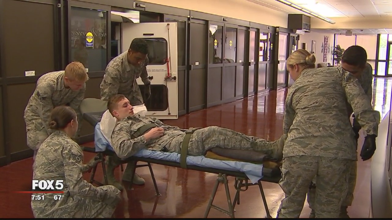 The Air Medical Staging Facility at Joint Base Andrews accepts wounded, ill, and injured warriors from all branches of the military.