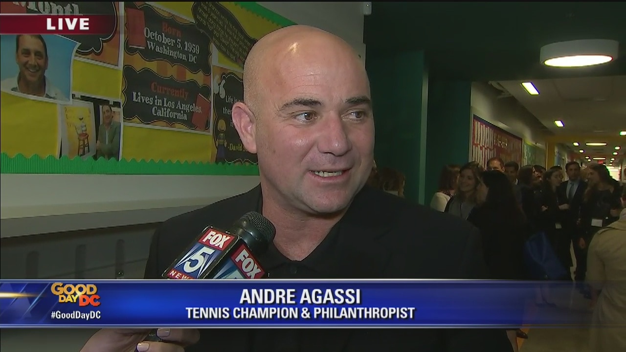 Andre Agassi cuts ribbon at new Rocketship Rise Academy.