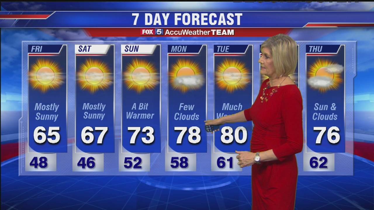 FOX 5's Sue Palka has the latest on your 7-day weather forecast.