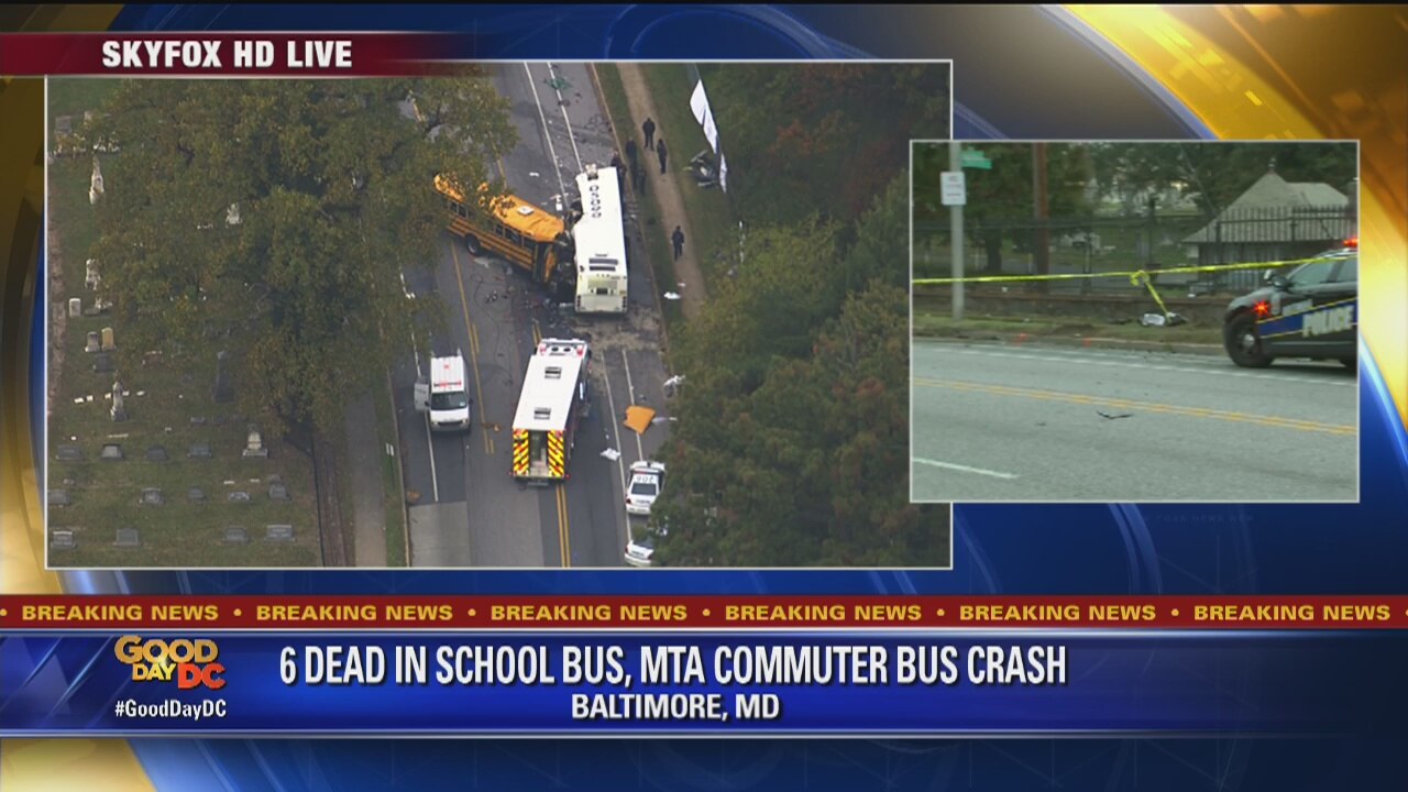 School bus, MTA commuter bus crash in Baltimore