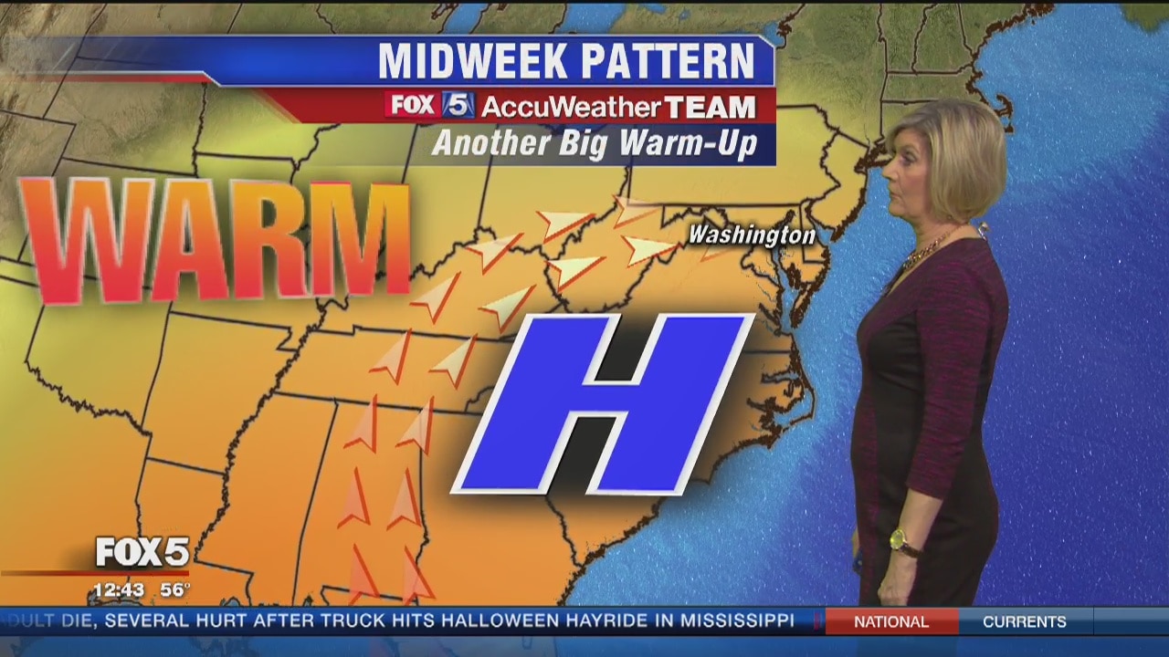 FOX 5's Sue Palka has more on the warm up in the temperature for the next couple of days!