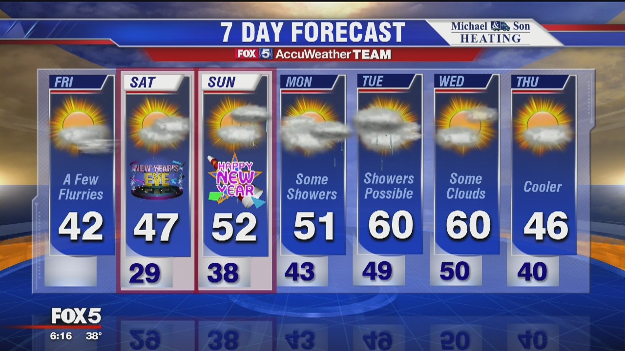 FOX 5's Tucker Barnes has the latest on the New Year's weekend forecast.