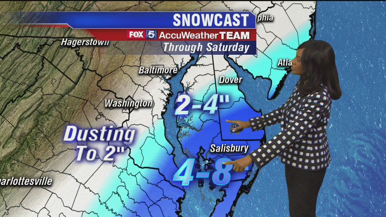 FOX 5's Gwen Tolbart has more on the possible snow for parts of the Mid-Atlantic area on Saturday.